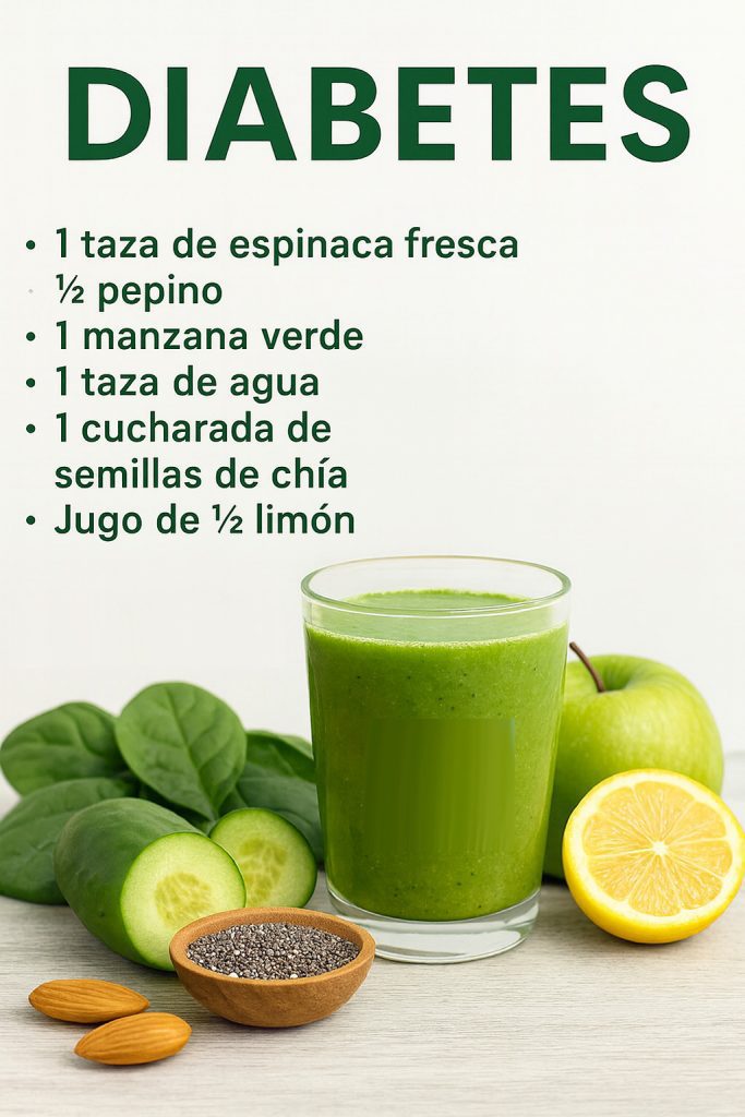 🩸 ¿Sientes esa fatiga traicionera que te arrastra después de comer, picos de azúcar que convierten tu día en una montaña rusa de hambre voraz y cansancio eterno, o el miedo latente a que la diabetes robe tu vitalidad, tu libertad y tus momentos preciados? Esa glucosa rebelde no es un destino cruel; es un desequilibrio que tu cuerpo clama por corregir, un grito silencioso por un aliado natural que estabilice sin pastillas, queme grasa sin sacrificios y te regale energía sostenida como un río inagotable. Imagina un batido fresco, verde como esmeralda y cítrico como amanecer, hecho con espinaca que inunda con magnesio, pepino que drena excesos, manzana verde que atrapa azúcares, chía que prolonga saciedad y limón que enciende enzimas –licuado en 1 taza de agua para un elixir que regula glucosa como un reloj suizo, apoya metabolismo con fibra y antioxidantes, y transforma tu mañana en un boost de bienestar que dura todo el día. Este batido no es una moda pasajera de influencers; es un arma ancestral redescubierta para diabéticos y preventivos que rechazan inyecciones y abrazan la naturaleza que equilibra, nutre y empodera. ¿Sientes esa urgencia en tu sangre, ese anhelo por despertar con niveles estables, energía desbordante y un cuerpo que responde con precisión? Sigue leyendo, porque este jugo –tomado en ayunas 4 veces por semana– no solo controla azúcar: te libera de crashes, te hace sentir invencible y te regala un metabolismo que quema, estabiliza y vitaliza. Prepárate para un ritual que te mantendrá hipnotizado, sorbo a sorbo, hasta que sientas la glucosa en armonía, la energía fluyendo y una vida sin el yugo de la diabetes. ¡Tu revolución metabólica comienza ahora!