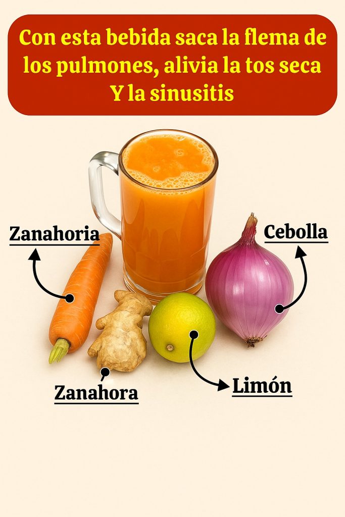 🌿 ¿Sientes la nariz tapada, el pecho cargado de flema o una tos seca que no te deja en paz? Imagina un remedio natural tan poderoso que limpia tus pulmones, despeja tus senos paranasales y te devuelve la libertad de respirar profundamente en solo días. Desde te traigo esta receta ancestral que combina la fuerza de la zanahoria, la cebolla, el jengibre y el limón para transformar tu salud respiratoria. Este licuado no es solo una bebida; es un elixir que barre las molestias y te hace sentir vivo otra vez. ¡Prepárate para descubrir cómo decir adiós a la sinusitis y la tos con cada sorbo!